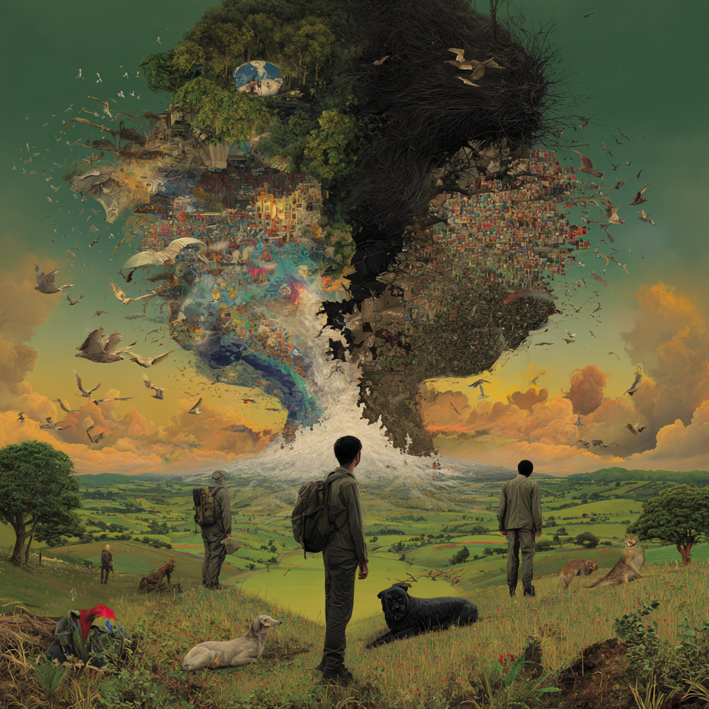 Prompt: Essence of global politics and environmental concerns, inklings of peace talks, urgent appeals for aid amidst climate calamities, exploration of biodiversity and artificial intelligence regulation, stirring events from sports world to captivating historical finds.