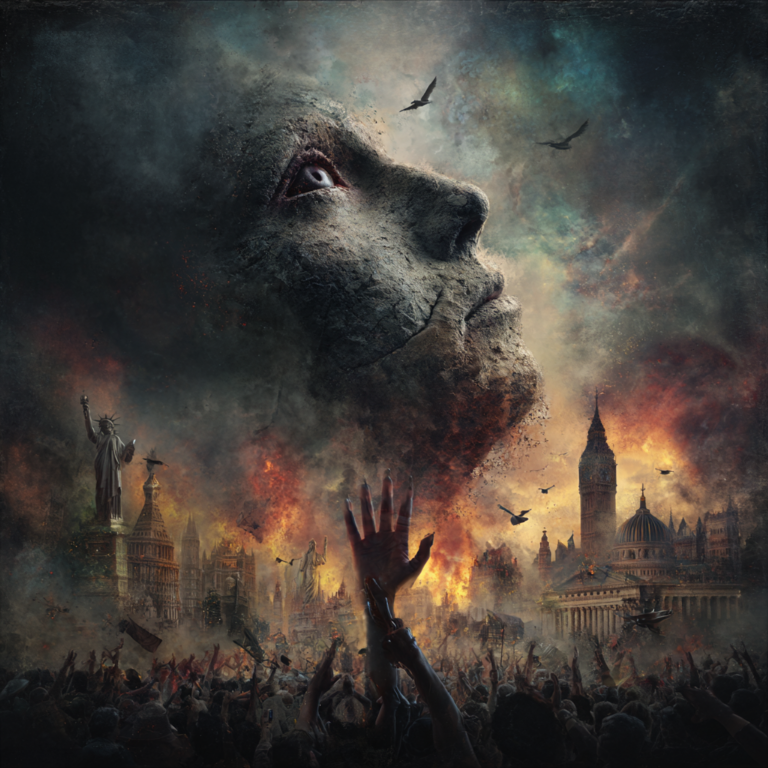 Prompt: Demonstrations and political tensions, technology ultimatums, conflict fatalities, affirmations of democratic power, migration challenges, misinformation struggles, unaffected investments despite war, marathon excitement, surprising sports victories, hacking concerns, tragic accidents, art preservation amidst disaster, weather-induced chaos, robbery victims, scientific scrutiny, potential conflicts at art expos, record-breaking music