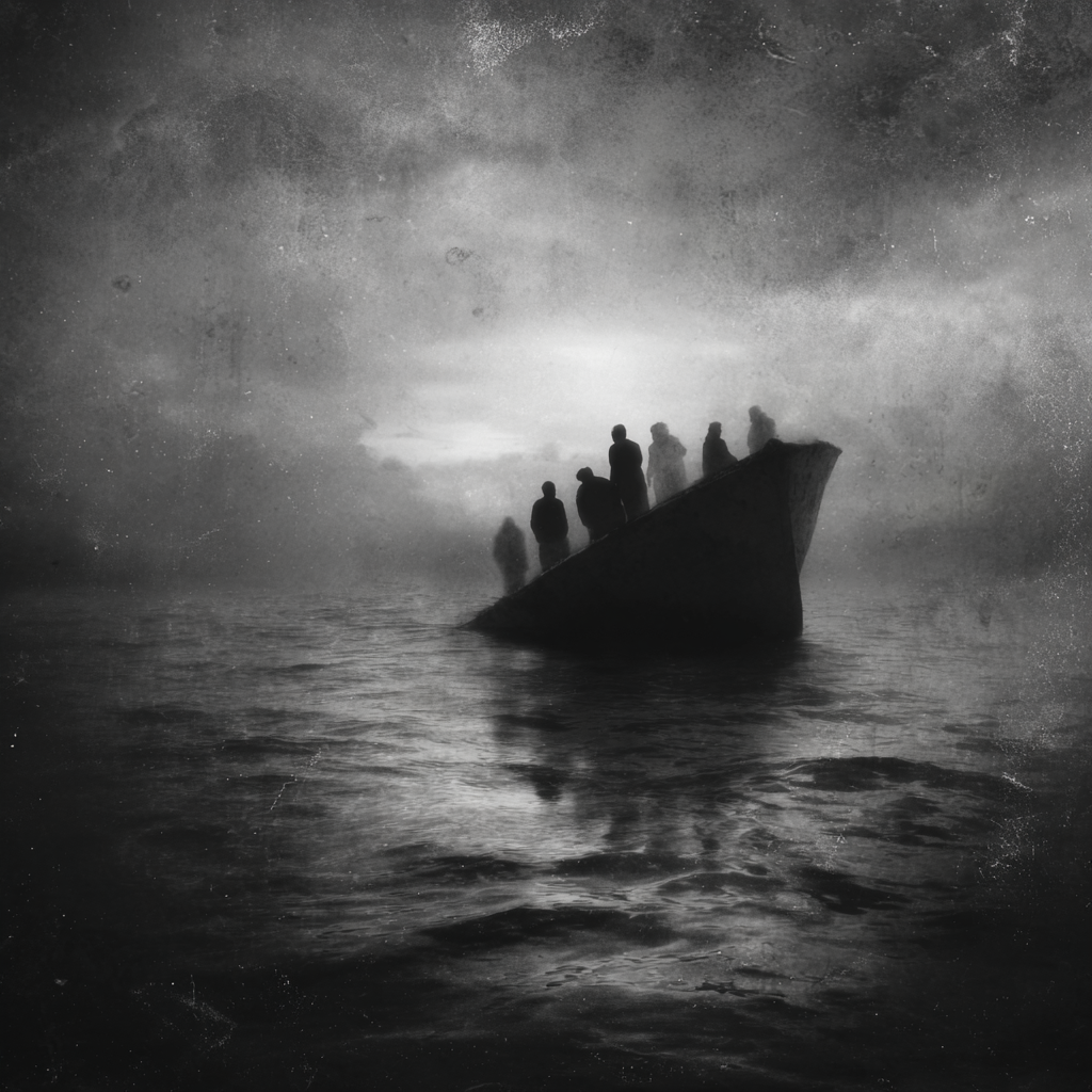 Prompt: Sinking refugee boat, international political tensions, financial reports, civilian resistance, unfortunate deaths, care for refugees, attacks on energy infrastructures, technological trade restrictions, aviation restrictions, challenging weather conditions, criminal searches, tragic accidents, infrastructural projects, sporting events, historical reminiscence, artistic exhibitions, celebrity news.