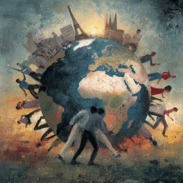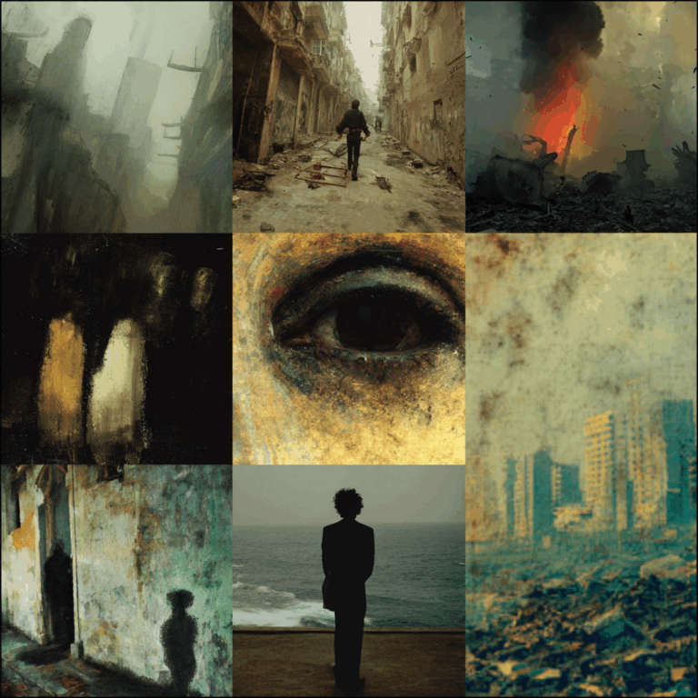 Prompt: Political unrest, pleads for unity, public demonstrations against authority, prevailing sense of insecurities, hints of stinging prosperity in sports, alarming situations of public safety, flourishing green initiatives in city landscapes, mournful moment to beloved artists passing, peculiar pause in concert due to unforeseen issues, triumphant moments in culinary feats.